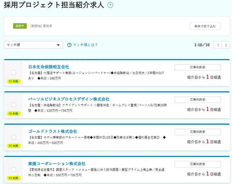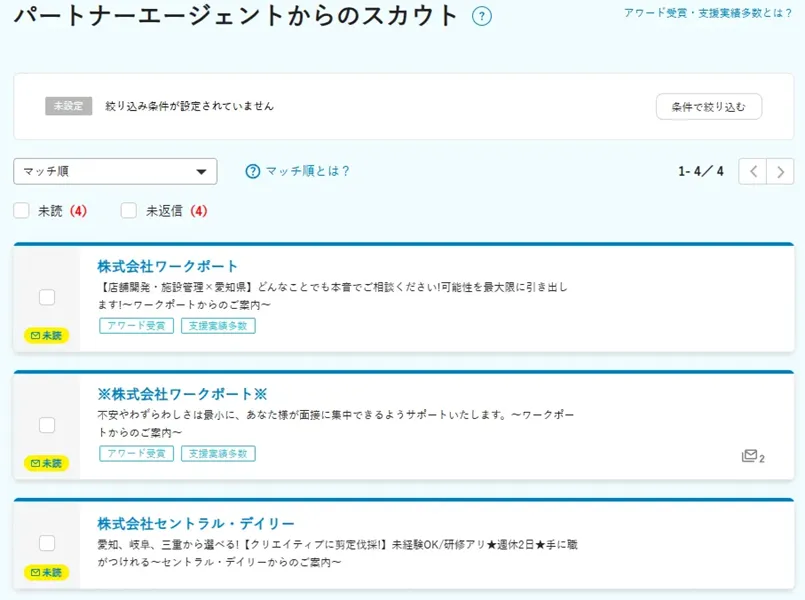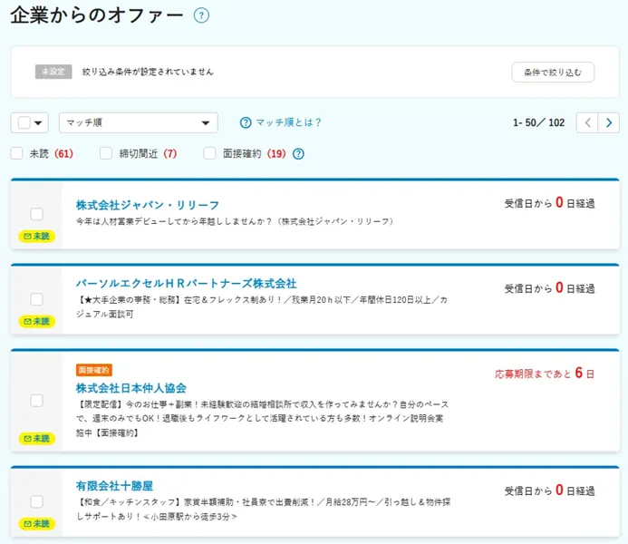 とにかく求人がたくさんあるので、「経歴が魅力的な人」は必然的に求人のメールもたくさん来ます。
