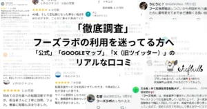 「公式」「Googleマップ」「X(旧ツイッター)」から、フーズラボの口コミと評判を調査しました。
