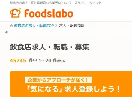 変更はいつでも出来るので、まずはフーズラボに登録して求人を探す。