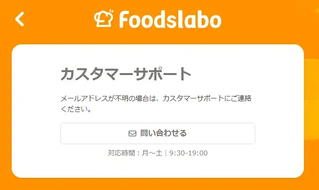フーズラボのカスタマーサポート→https://foods-labo.com/users/auth/pages/forgot_email