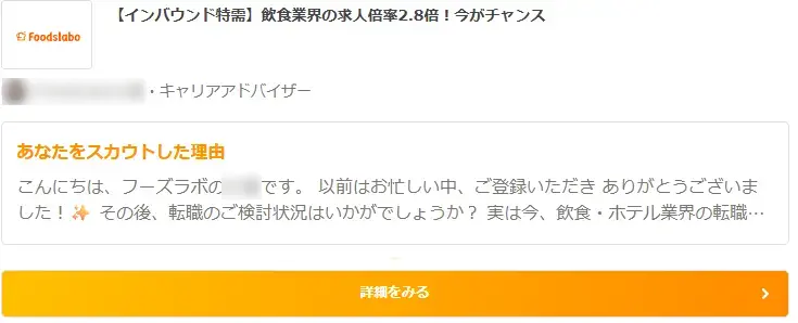フーズラボに登録すると、企業からのスカウトメールが来ます。