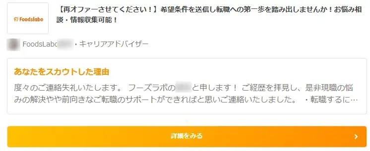 これはやはり、フーズラボも仕事のため転職希望者がいれば企業に紹介したいんだと思います。
